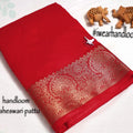 Ethereal Essence Engaging Red Tissue Silk Woven Borders Saree