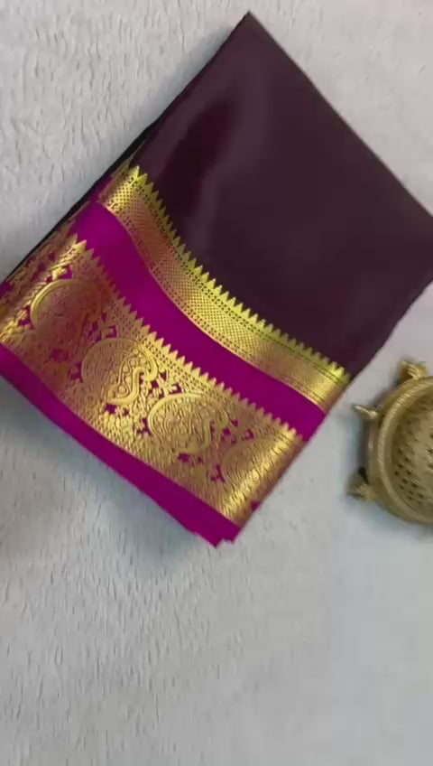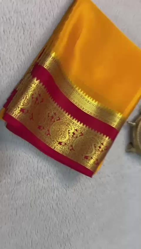 Experience luxury and traditional elegance with our ๐Pure Brocade Mysore Silk sarees ๐ Made with pure silk and intricate brocade designs, these sarees exude a timeless beauty. Embrace the rich cultural heritage of India and stand out with these exquisite sarees.