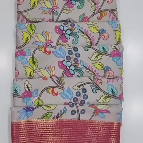GORGEOUS Printed Mysore silk sarees in beautiful, kalamkari prints!
