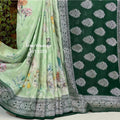Sea Green Digital Flower Print Crepe Georgette Fabric Casual Saree